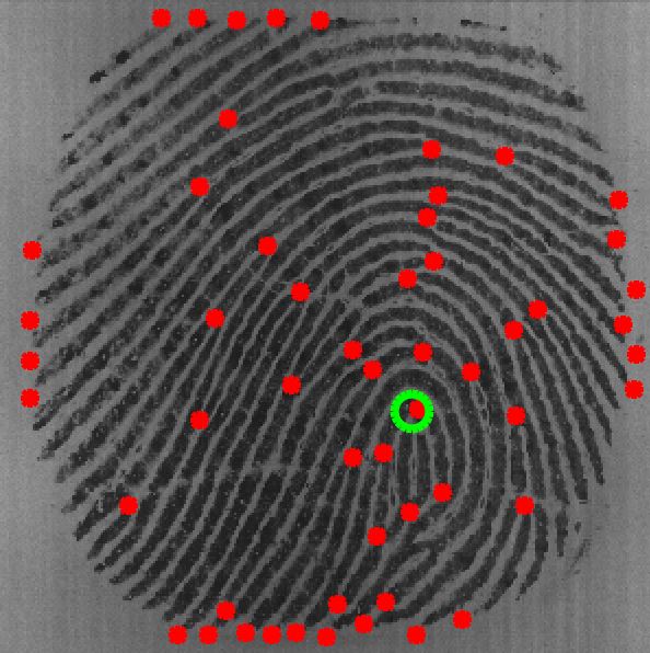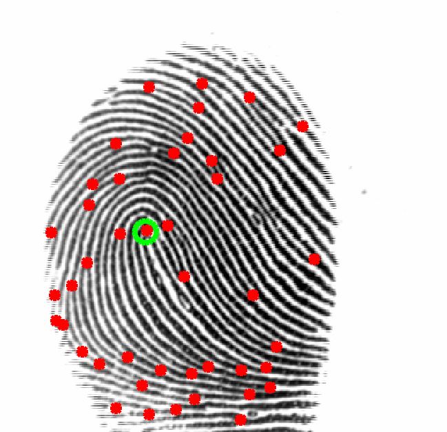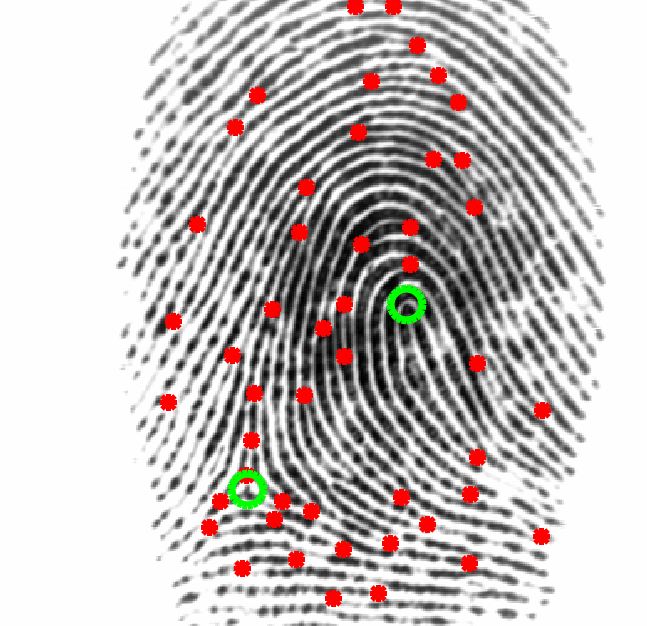 Few examples of singular and minutiae points detected from the fingerprint sample images shown above