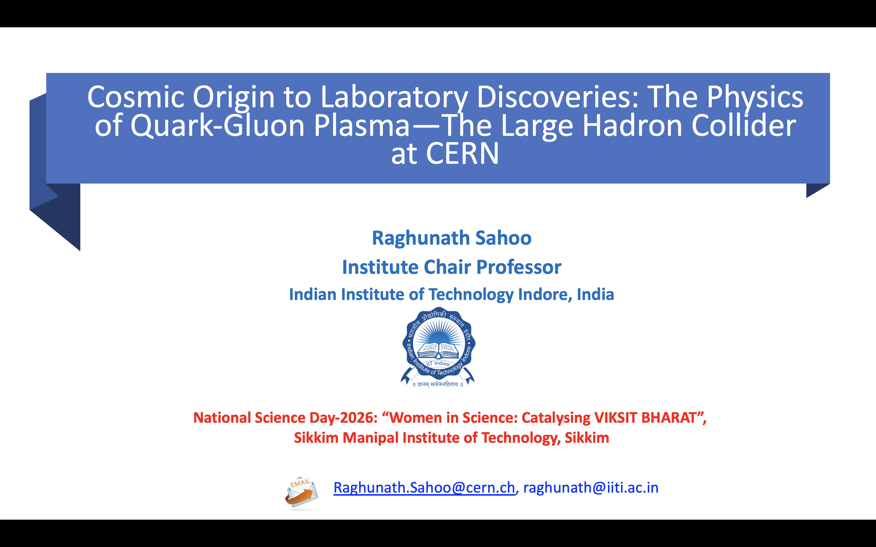 From Rutherford Scattering to the Large Hadron Collider (LHC) Expert Lecture on Physics for MHRD's Ishan Vikash Programme (North-East School Children), IIT Indore, 02 Dec. 2015.